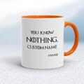Personalised You Know Nothing Mug A novelty mug with "Game of Thrones inspired Personalised You Know Nothing, 'Custom Name'" printed on both sides. Simple and straight to the point this novelty ...