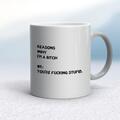 Reasons Why I'm A Bitch MugA rude mug with 'Reasons Why I'm A Bitch #1: You're Fucking Stupid.' printed on both sides. Simple and straight to the point this rude mug is great as a gift for any occ...