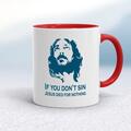 Jesus Died For Nothing Mug A rude mug with "If You Don't Sin Jesus Died For Nothing" printed on both sides. Simple and straight to the point this rude mug is great as a gift for any occasion. Ou...