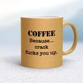 Crack Fucks You Up Mug A rude mug with "Coffee Because Crack Fucks You Up" printed on both sides. Simple and straight to the point this rude mug is great as a gift for any occasion. Our Crack Fu...