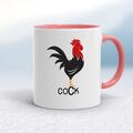 Cock Mug A rude mug with a splendid cock upon the word "Cock" printed on both sides. Simple and straight to the point this rude mug is great as a gift for any occasion. Our Cock mug is hand-prin...