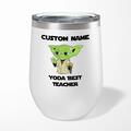 Personalised Yoda Best Teacher Wine TumblerOur Personalised Yoda Best Teacher 12oz tumbler is hand-printed with 'Personalised Yoda Best Teacher' on both sides (front/back) of an insulated stainles...