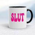 Pink Slut Mug A rude mug with "SLUT" in a pink bold font printed on both sides. Simple and straight to the point this rude mug is great as a gift for any occasion. Our Pink Slut mug is hand-prin...