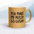 You Make My Pussy Go Gushy Mug A rude mug with "You Make My Pussy Go Gushy" printed on both sides. Simple and straight to the point this rude mug is great as a gift for any occasion. Our You Mak...