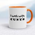 I Work With Cunts Mug A rude mug with "I Work With Cunts" printed on both sides. Simple and straight to the point this rude mug is great as a gift for any occasion. Our I Work With Cunts mug is ...