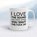 Sound You Make Mug A rude mug with "I Love The Sound You Make When You Shut The Fuck Up" printed on both sides. Simple and straight to the point this rude mug is great as a gift for any occasion...
