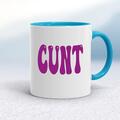 Purple Cunt Mug A rude mug with "CUNT" in a purple bold font printed on both sides. Simple and straight to the point this rude mug is great as a gift for any occasion. Our Purple Cunt mug is han...