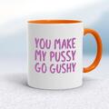 You Make My Pussy Go Gushy Mug A rude mug with "You Make My Pussy Go Gushy" printed on both sides. Simple and straight to the point this rude mug is great as a gift for any occasion. Our You Mak...