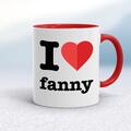 I Love Fanny Mug A rude mug with "I Love Fanny" on both sides. Simple and straight to the point this rude mug is great as a gift for any occasion. Our I Love Fanny mug is hand-printed on both si...