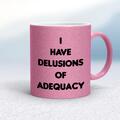 Delusions Of Adequacy Mug A geeky mug with "I Have Delusions Of Adequacy" printed on both sides. Simple and straight to the point this geeky mug is great as a gift for any occasion. Our Delusion...