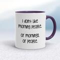 Morning People Mug A novelty mug with "I Don't Like Morning People. Or Mornings. Or People." printed on both sides. Simple and straight to the point this novelty mug is great as a gift for any ...