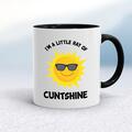 Cuntshine Mug A rude mug with a cute sunshine graphic and the phrase I'm A Little Ray Of Cuntshine printed on both sides. Simple and straight to the point this rude mug is great as a gift for any ...