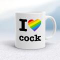 I Love Cock Pride Mug A rude mug with ""I Love Cockl" with a Pride rainbow heart" printed on both sides. Simple and straight to the point this rude mug is great as a gift for any occasion. Our...
