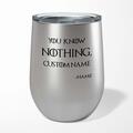 Personalised You Know Nothing Wine TumblerOur Personalised You Know Nothing 12oz tumbler is hand-printed with 'Personalised You Know Nothing' on both sides (front/back) of an insulated stainless s...