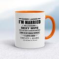 Sorry Ladies Mug A rude mug with "Sorry Ladies I'm Married To A Fucking Sexy Wife She's A Bit Crazy & Scares Me Sometimes She Is My Whole World I Love Her Forever & Always (Yes, She Bought Me Thi...