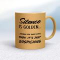 Silence Is Golden Mug A novelty mug with "Silence is golden... ....unless you have kids, then it's just suspicious" printed on both sides. Simple and straight to the point this novelty mug is gr...