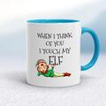 Touch My Elf Mug A rude mug with "When I Think Of You I Touch My Elf" printed on both sides. Simple and straight to the point this rude mug is great as a gift for any occasion. Our Touch My Elf ...