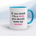 If You Think I'm a Bitch Mug A rude mug with "If you think I'm a bitch you should meet my ..." choose from either sister or mother printed on both sides. Simple and straight to the point this ru...