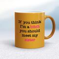 If You Think I'm a Bitch Mug A rude mug with "If you think I'm a bitch you should meet my ..." choose from either sister or mother printed on both sides. Simple and straight to the point this ru...