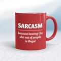 Sarcasm Because MugA rude mug with 'Sarcasm because beating the shit out of people is illegal' printed on both sides. Simple and straight to the point this rude mug is great as a gift for any occa...