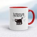 Lesbians Eat What Mug A rude mug with "Lesbians Eat What?!" printed on both sides. Simple and straight to the point this rude mug is great as a gift for any occasion. Our Lesbians Eat What mug i...