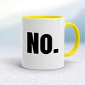No Mug A novelty mug with "No." printed on both sides. Simple and straight to the point this novelty mug is great as a gift for any occasion. Our No mug is hand-printed on both sides (front/back...