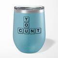 Scrabble Tiles You Cunt Wine Tumbler - Blue Glitter, 12oz