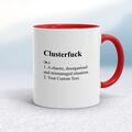 Clusterfuck Mug A rude mug with "Clusterfuck (n) 1. A chaotic, disorganised and mismanaged situation." and for 2. choose either the Labour Party or the Conservative Party or you can add your own...