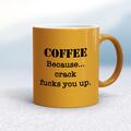 Crack Fucks You Up Mug A rude mug with "Coffee Because Crack Fucks You Up" printed on both sides. Simple and straight to the point this rude mug is great as a gift for any occasion. Our Crack Fu...