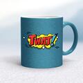 Pop Art Style Twat Mug - Blue Glitter/White, 10oz