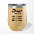 Silence Is Golden Wine TumblerOur Silence Is Golden 12oz tumbler is hand-printed with 'Silence Is Golden' on both sides (front/back) of an insulated stainless steel wine tumbler and available in a...