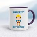 Can We Fix It No It's Fucked Mug A rude mug with a cheeky builder / workman graphic and "Can We Fix It? No It's Fucked!" printed on both sides. Simple and straight to the point this rude mug is ...