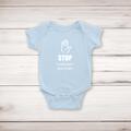 Stop BabygrowSuper soft and stretchy 100% cotton, short sleeve, babygrow / romper suit / sleepsuit with poppers for ease of dressing. Printed with 'Stop I Really Don't Give A Fuck' across the fron...