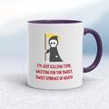 Just Killing Time Mug A rude mug with "Just Killing Time Waiting For The Sweet, Sweet Embrace Of Death" printed on both sides. Simple and straight to the point this rude mug is great as a gift f...