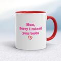 Ruined Your Boobs MugA rude mug with 'Mum, Sorry I Ruined Your Boobs' printed on both sides. Simple and straight to the point this rude mug is great as a gift for any occasion.Our Ruined Your Boob...