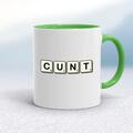 Scrabble Tiles Cunt Mug A rude mug with the word "Cunt" in the style of Scrabble tiles on both sides. Simple and straight to the point this rude mug is great as a gift for any occasion. Our Scra...