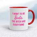 I Want To Be Barbie Mug A rude mug with "I Want To Be Barbie The Bitch has Everything" printed on both sides. Simple and straight to the point this rude mug is great as a gift for any occasion. ...