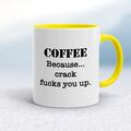Crack Fucks You Up Mug A rude mug with "Coffee Because Crack Fucks You Up" printed on both sides. Simple and straight to the point this rude mug is great as a gift for any occasion. Our Crack Fu...