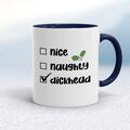 The Dickhead List Mug A rude mug with checkboxes for nice, naughty and dickhead, with dickhead selected printed on both sides. Simple and straight to the point this rude mug is great as a gift for...