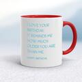 I Love Your Birthday Mug A novelty mug with "I Love Your Birthday. It Reminds Me How Much Older You Are Than Me. Happy Birthday." printed on both sides. Simple and straight to the point this nov...