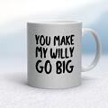 You Make My Willy Go Big Mug A rude mug with "You Make My Willy Go Big" printed on both sides. Simple and straight to the point this rude mug is great as a gift for any occasion. Our You Make My...