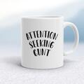 Attention Seeking Cunt Mug A rude mug with "Attention Seeking Cunt" on both sides. Simple and straight to the point this rude mug is great as a gift for any occasion. Our Attention Seeking Cunt ...