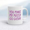 You Make My Pussy Go Gushy Mug A rude mug with "You Make My Pussy Go Gushy" printed on both sides. Simple and straight to the point this rude mug is great as a gift for any occasion. Our You Mak...