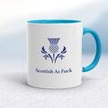 Scottish As Fuck Mug A rude mug with "Scottish As Fuck" below a Scottish thistle graphic printed on both sides. Simple and straight to the point this rude mug is great as a gift for any occasion...