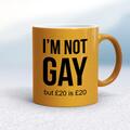 I'm Not Gay But £20 Is £20 Mug A rude mug with "I'm Not Gay But £20 Is £20" on both sides. Simple and straight to the point this rude mug is great as a gift for any occasion....