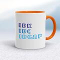 IDGAF Mug A novelty mug with "IDK, IDC, IDGAF" printed on both sides. Simple and straight to the point this novelty mug is great as a gift for any occasion. Our IDGAF mug is hand-printed on both...