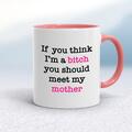 If You Think I'm a Bitch Mug A rude mug with "If you think I'm a bitch you should meet my ..." choose from either sister or mother printed on both sides. Simple and straight to the point this ru...