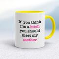 If You Think I'm a Bitch Mug A rude mug with "If you think I'm a bitch you should meet my ..." choose from either sister or mother printed on both sides. Simple and straight to the point this ru...