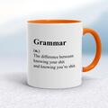 Grammar (n.) The Difference Between Knowing Your Shit Mug A rude mug with "Grammar (n.) The difference between knowing your shit and knowing you're shit." printed on both sides. Simple and strai...