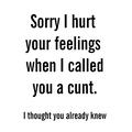 Sorry I Hurt Your Feelings Vinyl StickerAdd your mark to any car, bike, van, laptop, phone or smooth surface with this rude vinyl decal. Striking, witty and a little bit offensive, our Sorry I Hur...